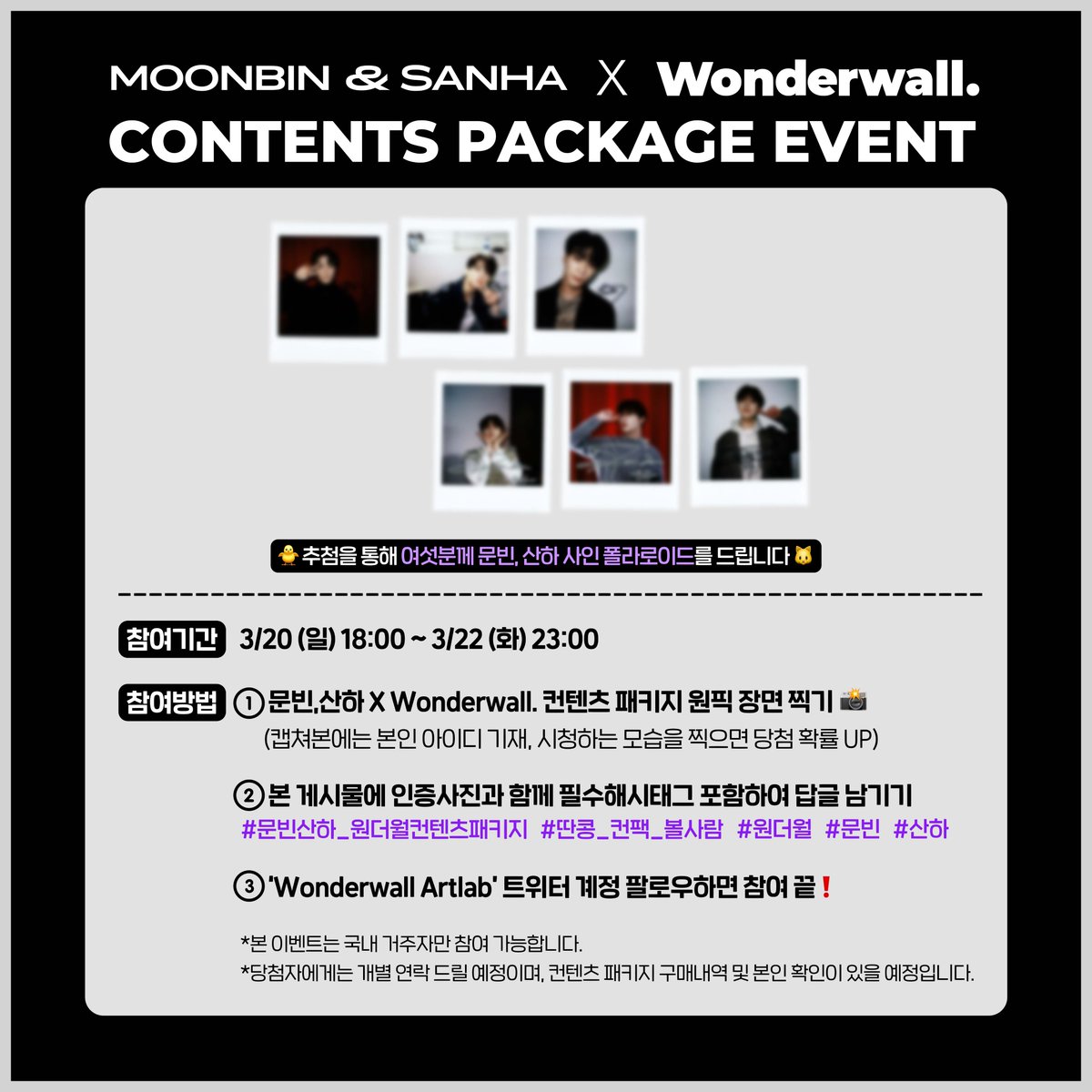 추첨을 통해 여섯분께 문빈산하 사인폴라로이드를 드립니다🥜
