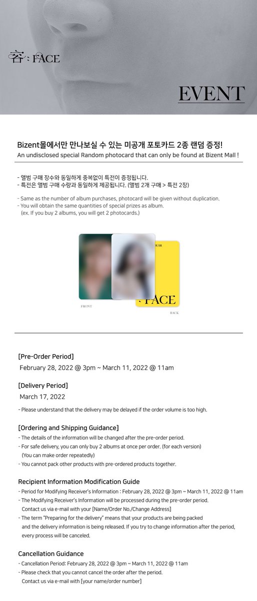 [容 : FACE] 앨범 사양