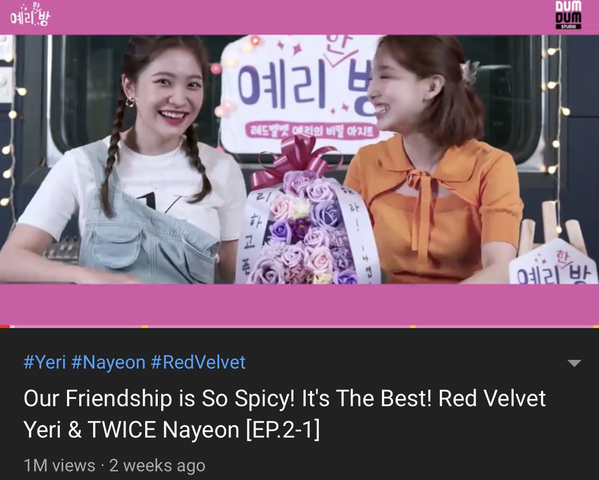 [INFO] 200705 - YERI’s ROOM EP.2-1 with NAYEON has reached 1M views! 💜🎉