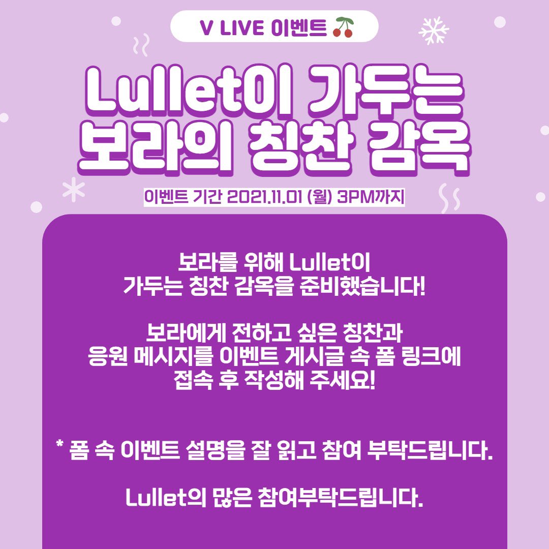 [EVENT] Lullet이 보고 싶었던 보라🐰 Lullet이 가두는 보라 칭찬 감옥 EVENT 안내