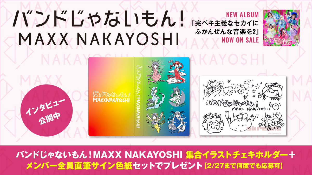 バンドじゃないもん!MAXX NAKAYOSHI集合イラストチェキホルダー+メンバー全員直筆サイン色紙プレゼント。