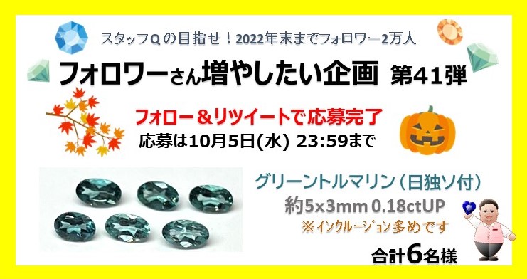 🍁誕生石が当たる!フォロー&RTで応募完了🍂 フォロワーさん増やしたい企画第41弾は<10月誕生石>ほんのりブルーを感じるグリーントルマリンを6名様にプレゼント🤩 応募はこのアカウントをフォローしてリツイートするだけ!皆様のご参加お待ちしております🥰 #プレゼント #10月誕生石 #トルマリン