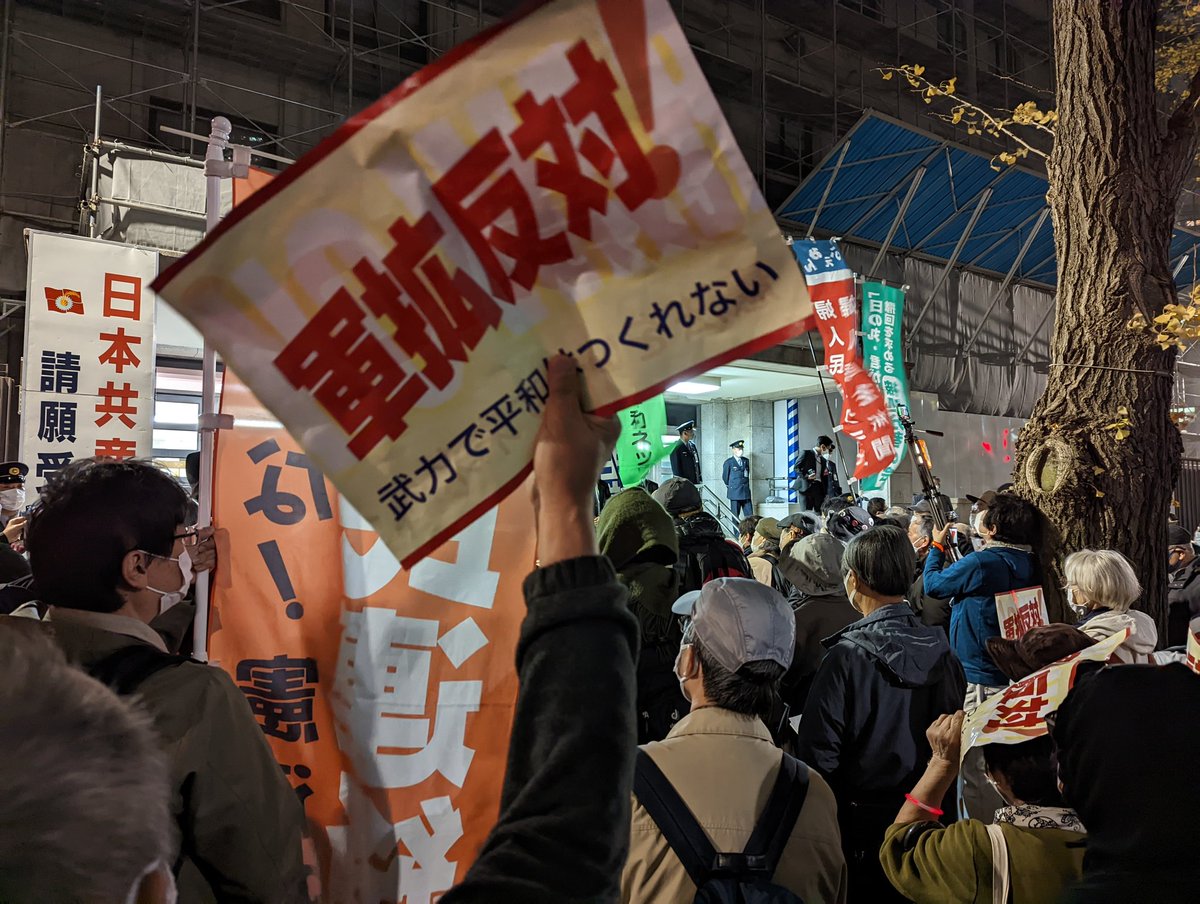 憲法違反の敵基地攻撃能力保有、軍事費倍増など、未曾有の大軍拡に反対する国会請願デモが進んでいます。参加者は1,500人📢