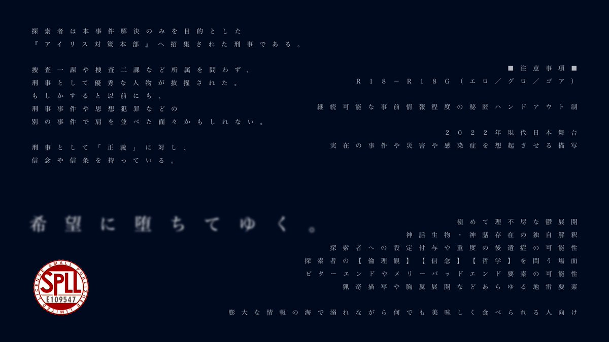 【CoCシナリオ】BLIND/JUSTICE SPLL:E109970 | 倫理観の欠場 uminomokuzu.booth.pm/items/4300763 #booth_pm