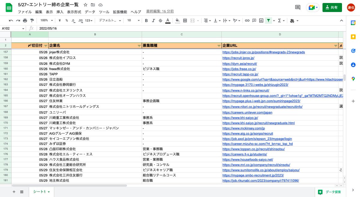 5/26以降でエントリーを募集している企業をまとめました。