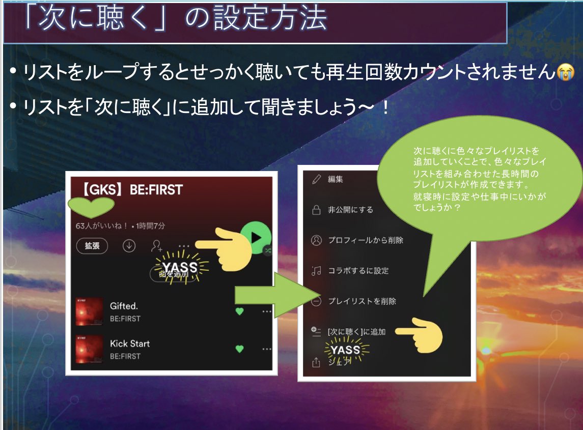 📢BE:FIRSTの楽曲を最大限に楽しむためのSpotifyの使用方法案内、プレイリスト共有アカウントです。