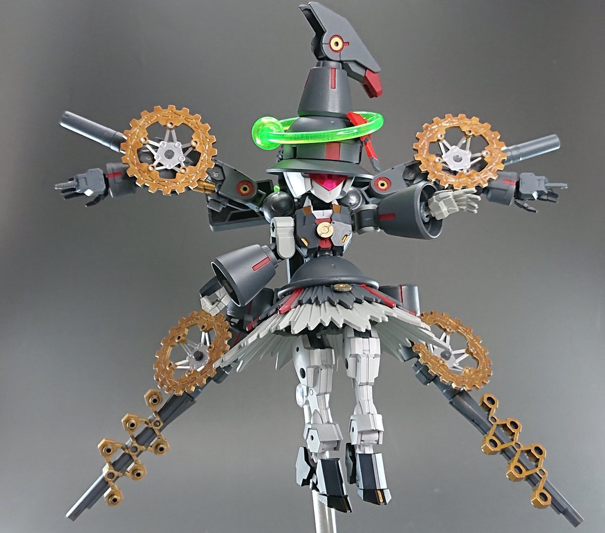 マルチウィングのギミックが面白かったので、わりとストレートな使い方で可変に組み込みました。使用したパーツは無加工です。