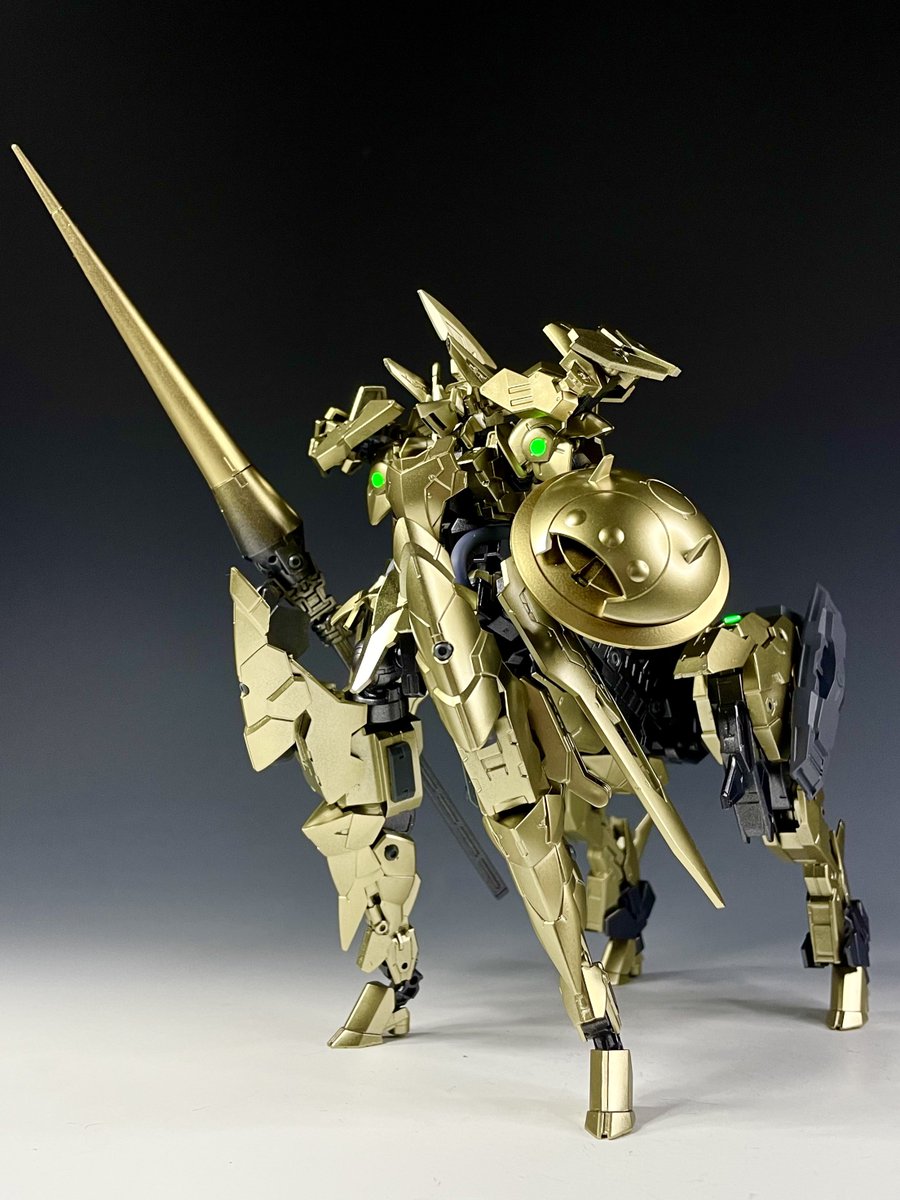 『ゴルド・フィアヴァイナ』  地球連合軍が試作した四脚騎士型EXMの一機。全身に対ビームコーティングが施され、あらゆるビーム兵器を無効化する。  森林や山岳地帯等の足場が悪いフィールドでの戦闘に特化する他、各所に配置されたブースターで宇宙空間での戦闘にも対応。 #30MMTAG1202 #30MM