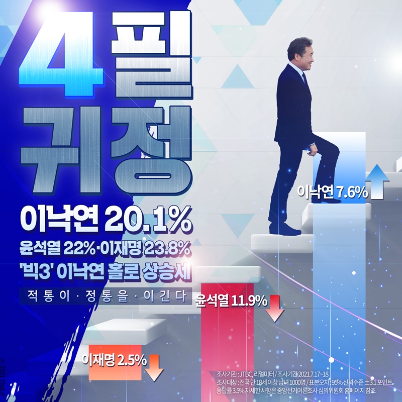 '4필귀정' 이낙연 20.1% 빅3 이낙연, 홀로 상승세 적통이 정통을 이긴다 #4번_이낙연