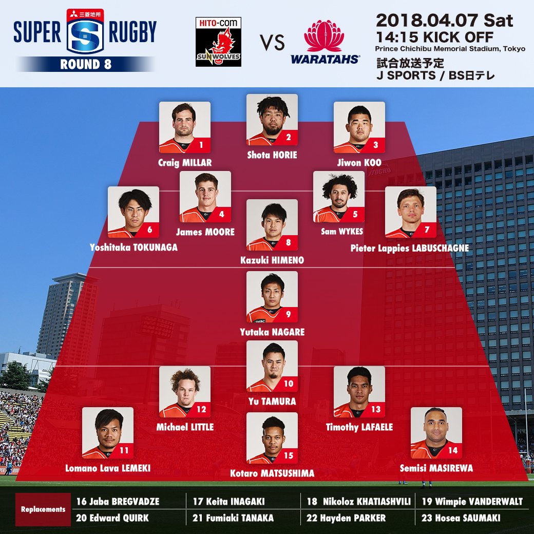 【ROUND 8 サンウルブズ vs. ワラターズ 試合登録メンバー発表 】