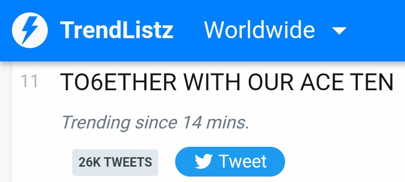 KW "TO6ETHER WITH OUR ACE TEN" is trending No.11 on Worldwide Twitter Trends 🌎
