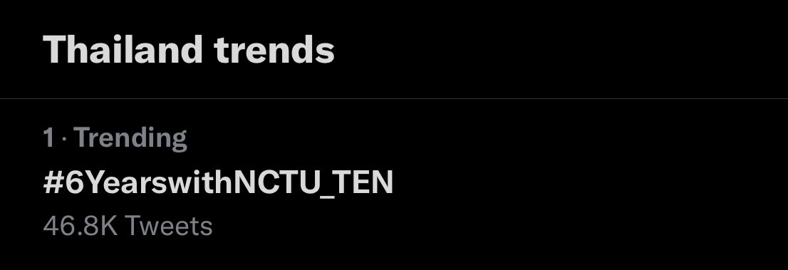 Hashtag #6YearswithNCTU_TEN is trending No.1 on Thailand Twitter Trends 🇹🇭