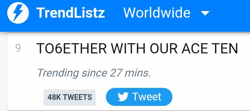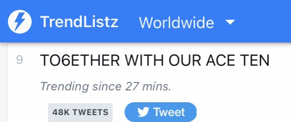 KW "TO6ETHER WITH OUR ACE TEN" is trending No.9 on Worldwide Twitter Trends 🌎