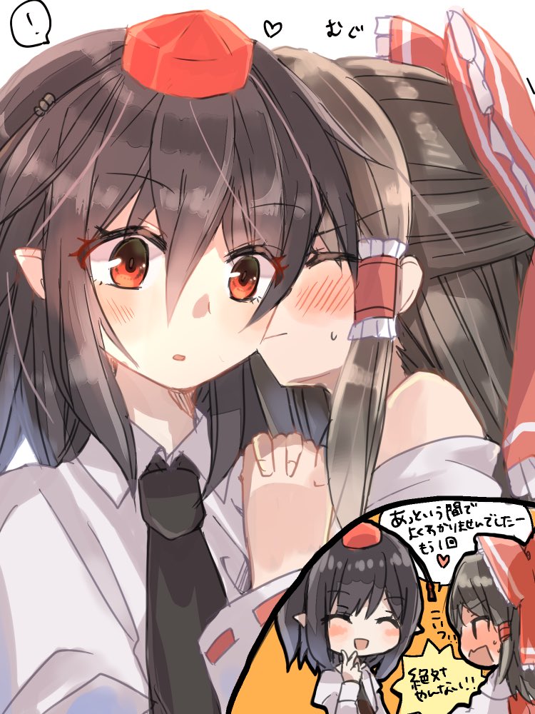 このさぁ...距離近過ぎて髪が相手の頭に沿って垂れてるのがさぁ...好きなんだよねぇ.........#東方project #8月6日はあやれいむの日