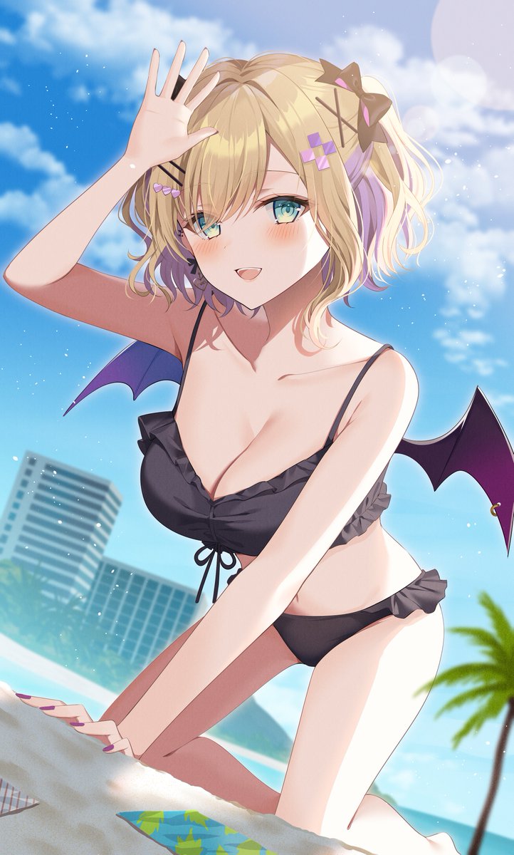 ミュシャ(@misa_chainchroA)先生に水着胡桃のあさんを描いて頂きました!小悪魔の翼付きの水着姿はとても可愛くて、透明感も大好きです!ありがとうございました!