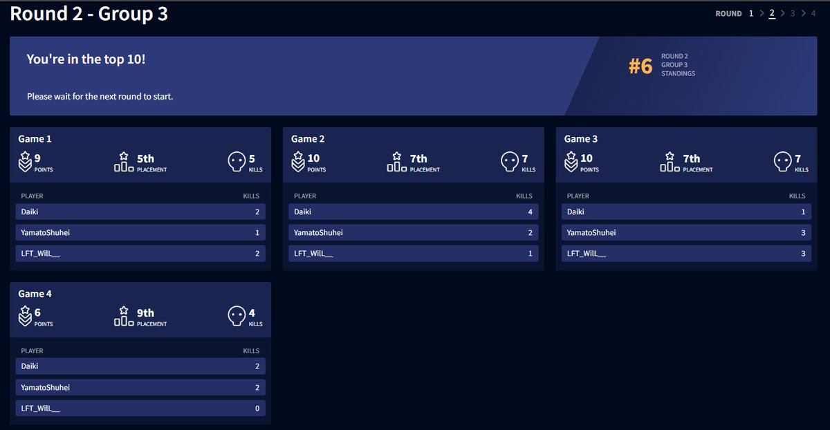 今回のChampionshipは敗退になります。