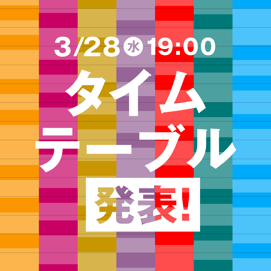 明日3月28日(水)19:00、タイムテーブル発表!
