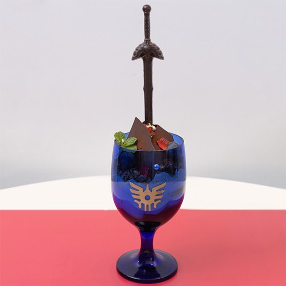ロトのつるぎをかたどった大きなチョコレートを飾ったティラミス風のパフェです。
