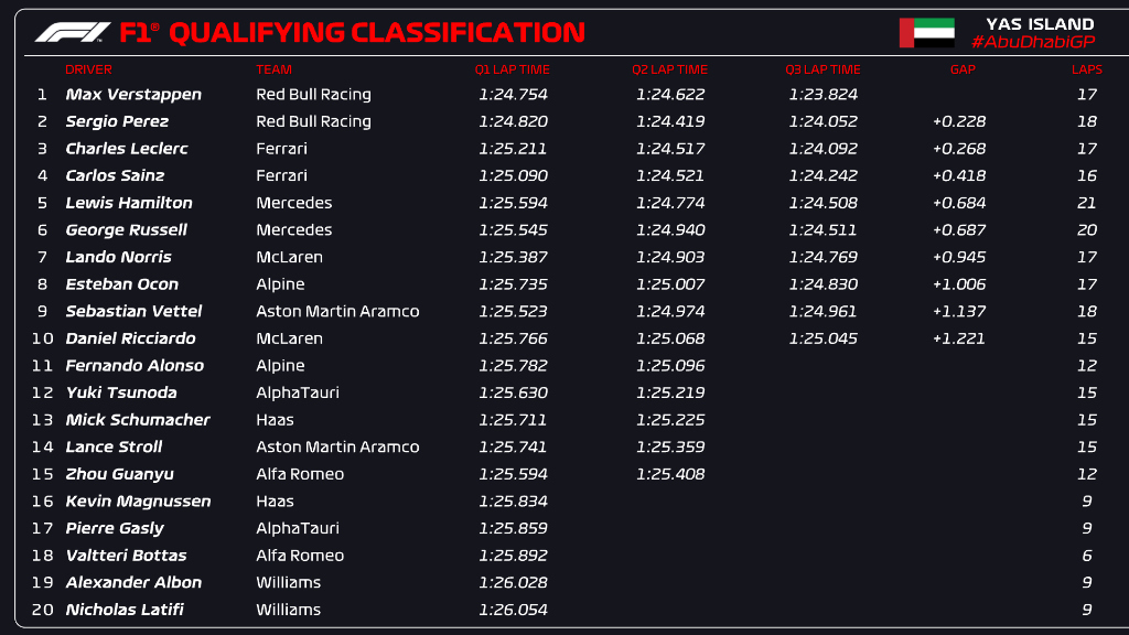 LOCKING OUT THE FRONT ROW!! 🔒 @Max33Verstappen is on Pole for the #AbuDhabiGP and @SChecoPerez is P2 💪