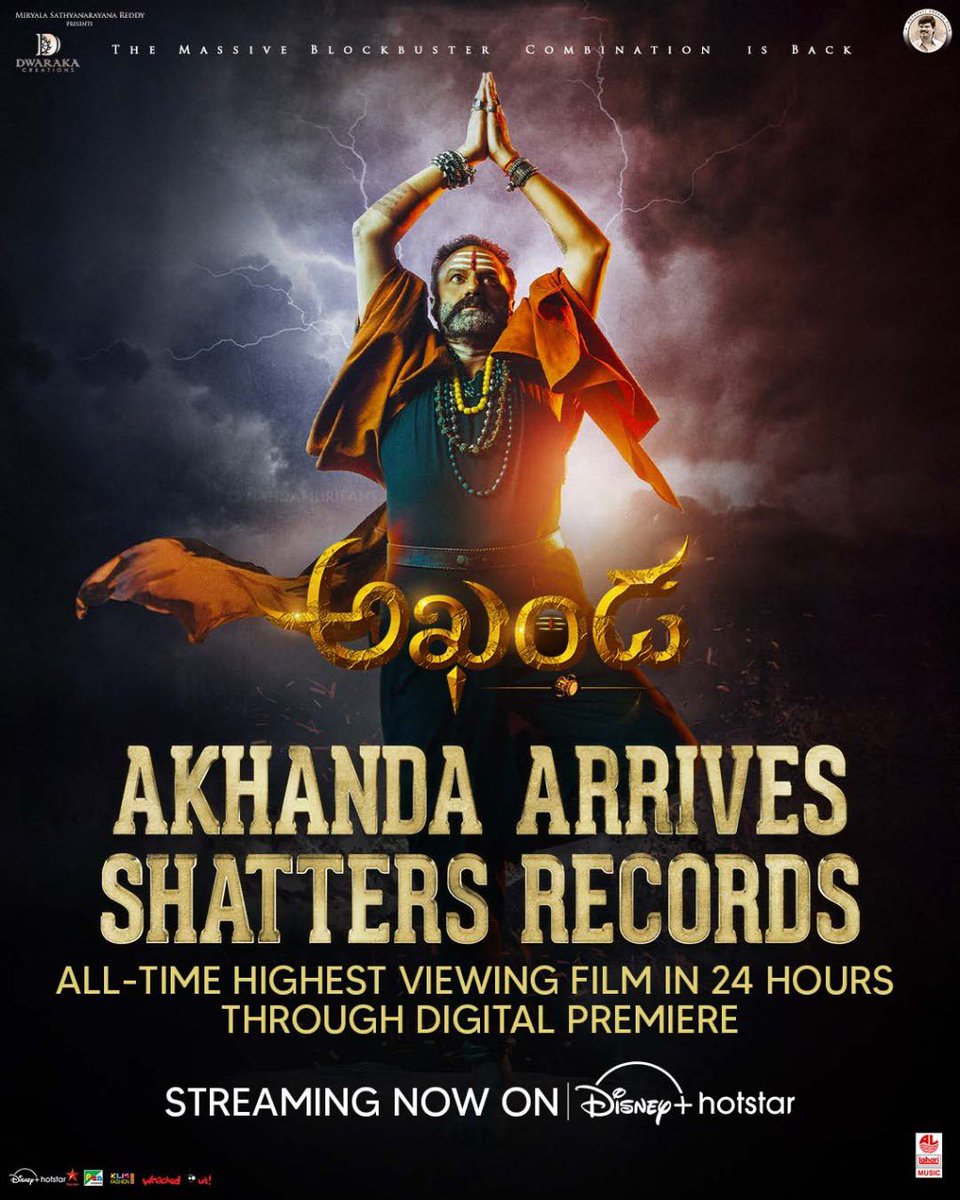 #Akhanda Becomes 𝗔𝗹𝗹 𝗧𝗜𝗠𝗘 𝗛𝗜𝗚𝗛𝗘𝗦𝗧 𝗩𝗜𝗘𝗪𝗘𝗗 𝗙𝗜𝗟𝗠 in 24Hrs through Digital Premiere