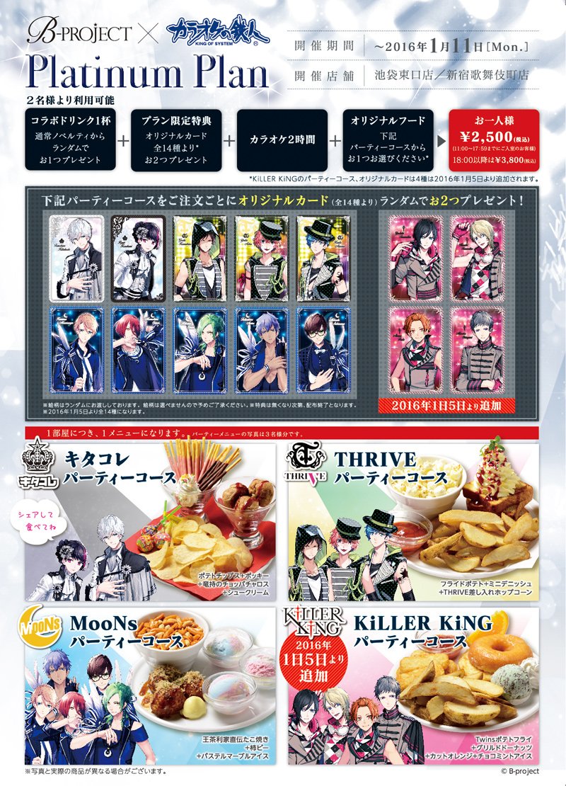 【B-project×カラオケの鉄人】プラチナプランのKiLLER KiNGコースが明日1/5(火)よりスタート!キラキンのスペシャルカードが貰えるのは1/11まで⇒karatetsu.com/animegame/bpro… #Bプロ