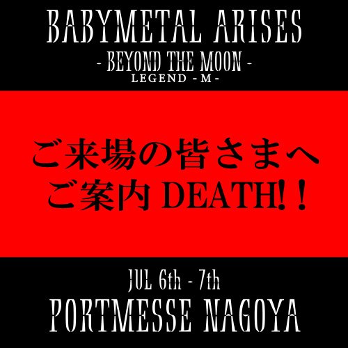 『BABYMETAL ARISES - BEYOND THE MOON - LEGEND - M -』ポートメッセなごや公演にご来場の皆さまへご案内DEATH!!