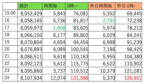 900万まで4万6086回、到達予想時刻は16時としておきますが、午前中に伸びそうなので早まるでしょうね😊