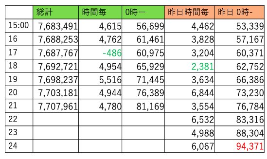 昨日の記録を抜きました、というかこの超安定っぷりウケる🤣強火ガツガツ。