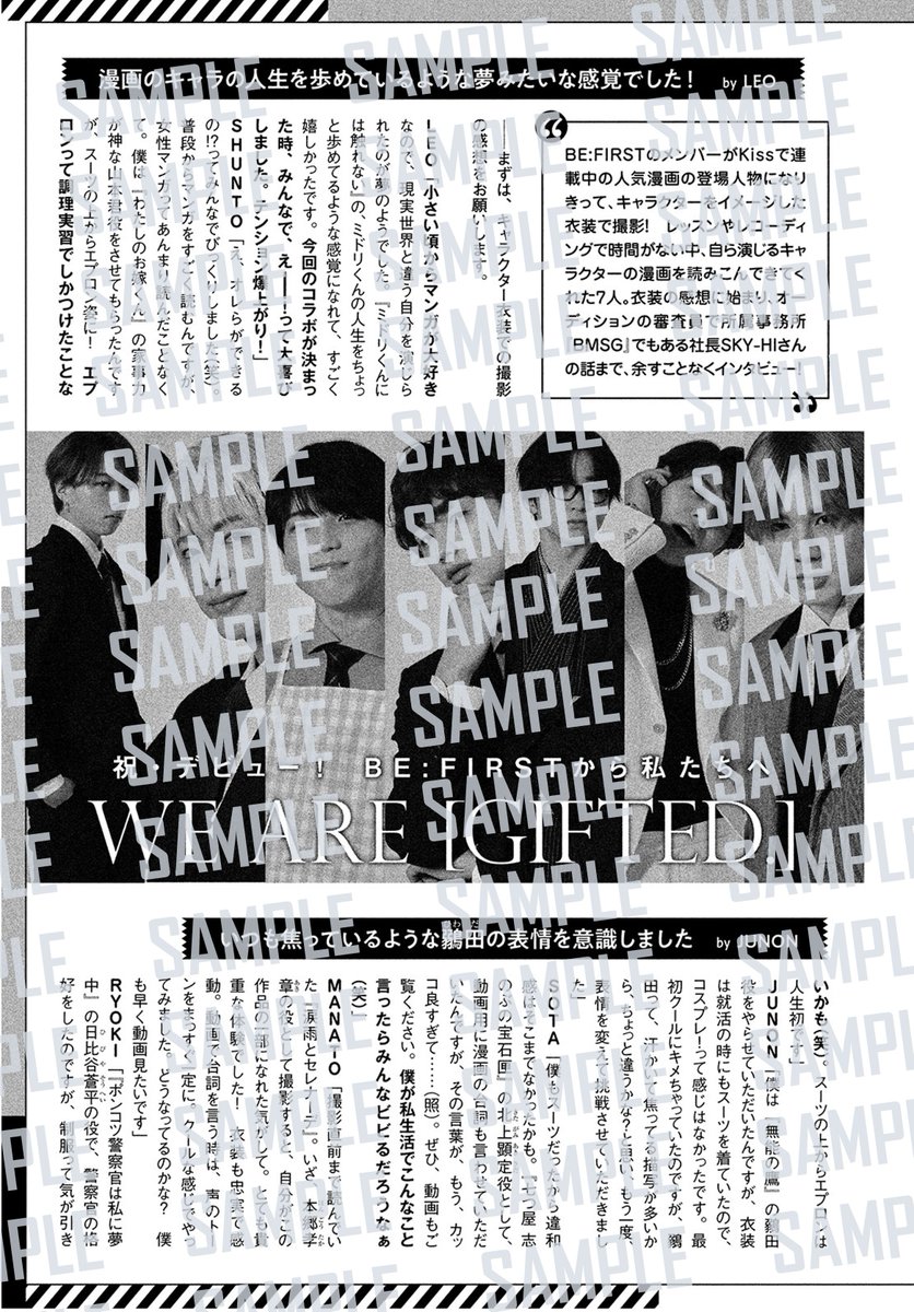 BE:FIRST×女性コミック誌Kissスペシャルコラボ✨