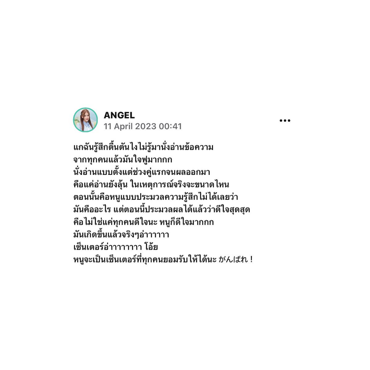 เปล่งประกายให้เต็มที่เลยนะ ทุกการเดินทางของแองเจิ้ล พวกเราพร้อมที่จะสนับสนุนเสมอ