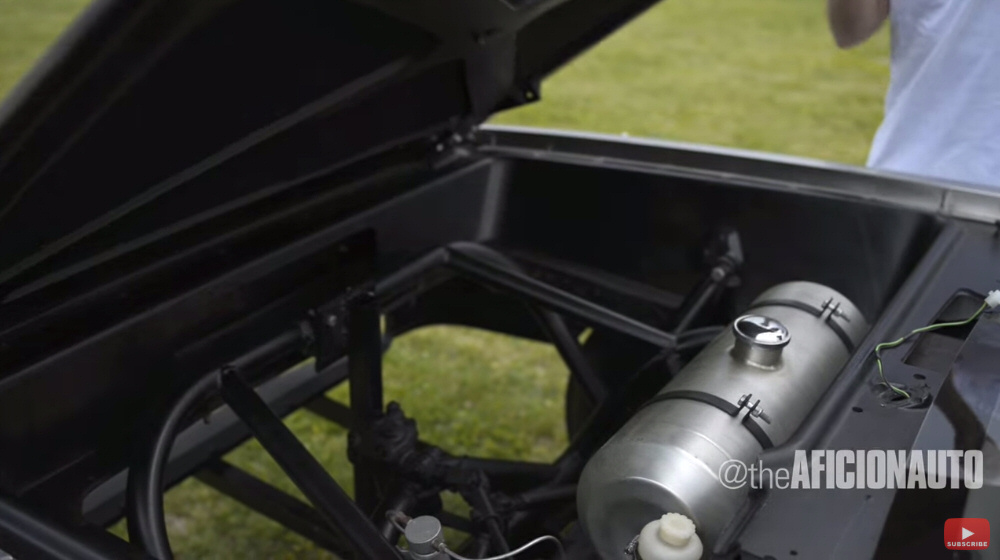オフロードを走るため、VWビートルのエンジンや足回りに交換、バックボーンシャーシをチューブラーフレームに。Aピラーをよく見るとパイプが見えているのがわかりますよ。