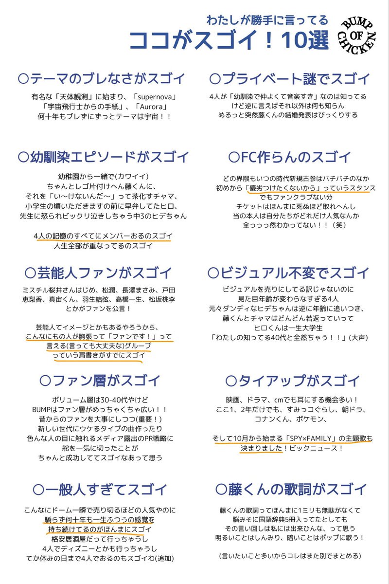 友達にBUMP OF CHICKENを教えたくて作った布教シートちまちま作るのがんばったから見てほしい〜〜!