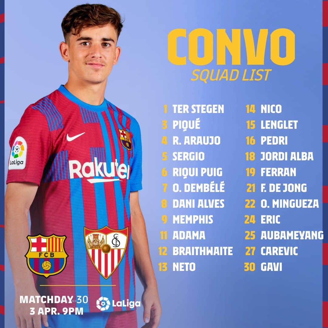 The squad for #BarçaSevilla!