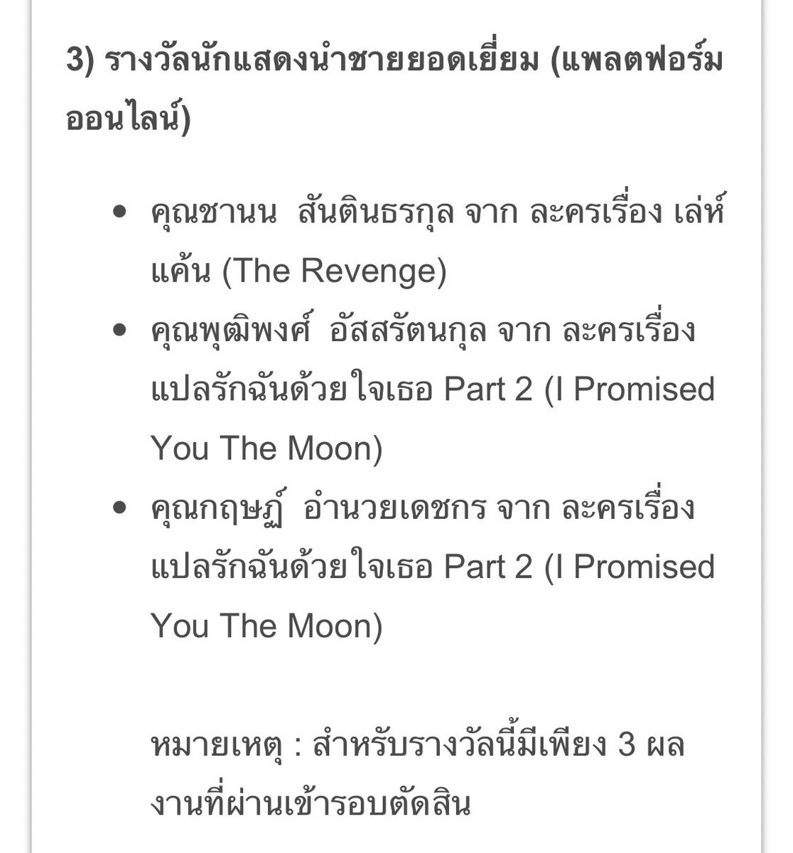 🧡 รางวัลนักแสดงนำชายยอดเยี่ยม (แพลตฟอร์มออนไลน์)