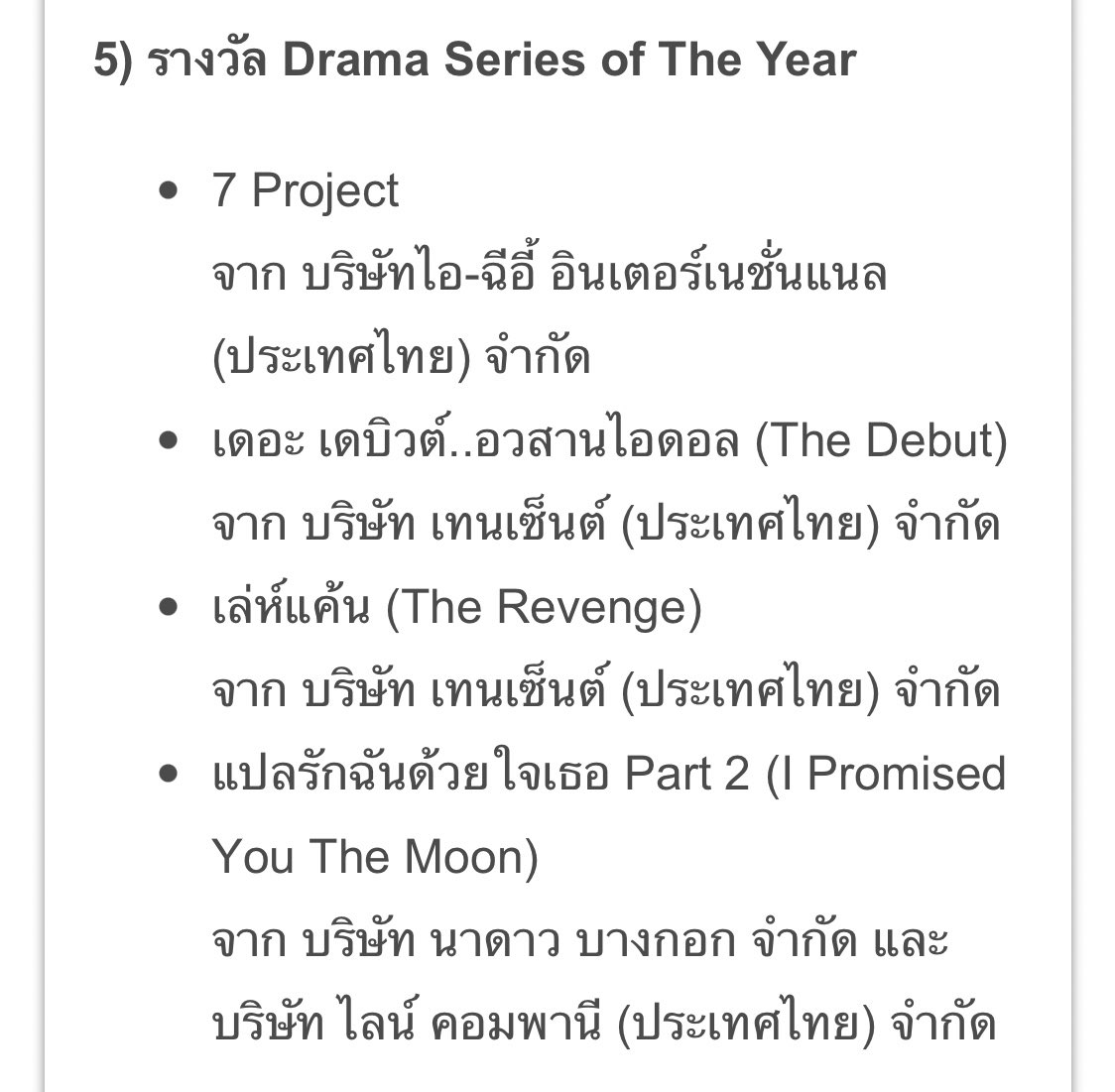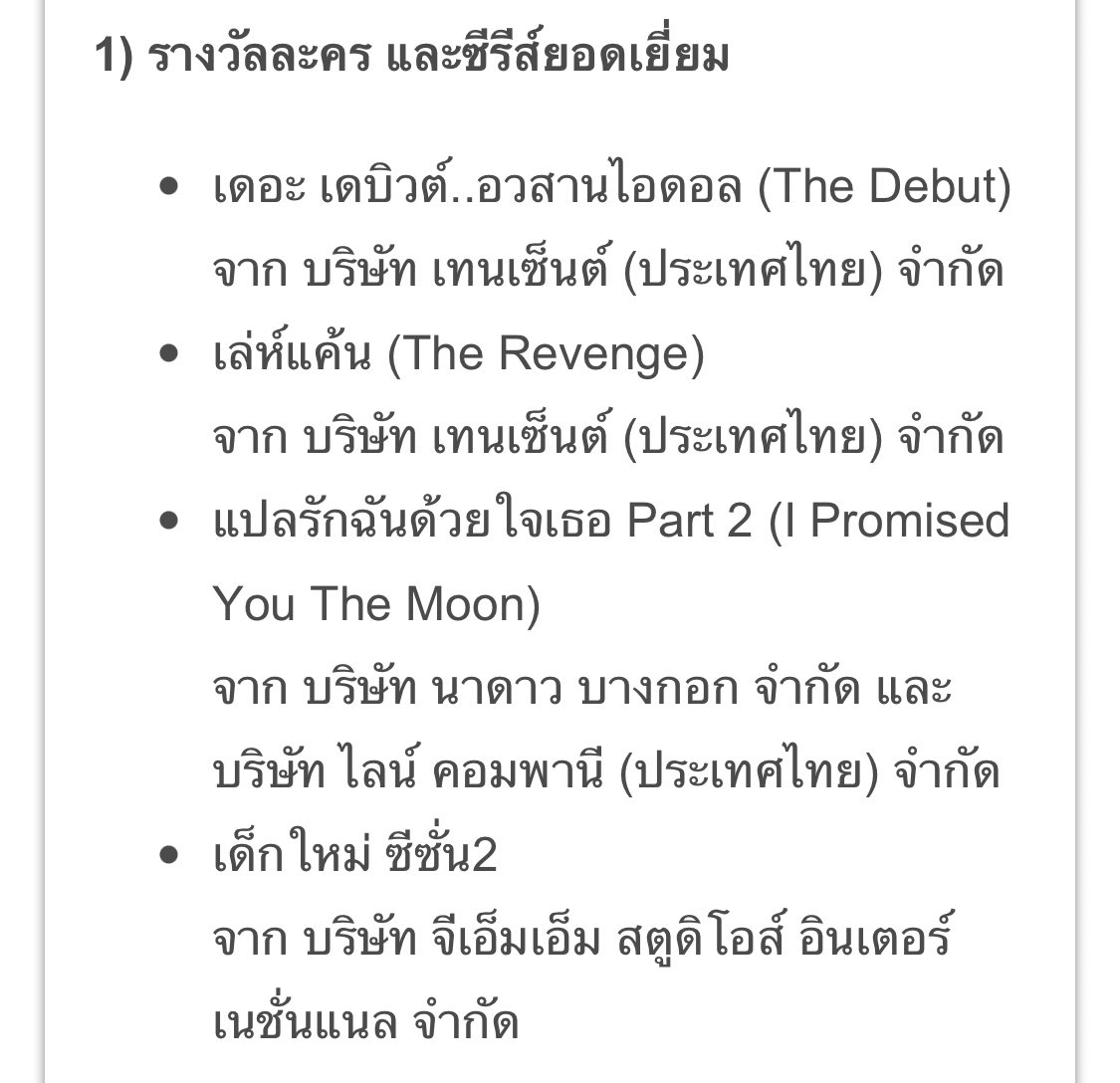 🧡 รางวัลละคร และซีรีย์ยอมเยี่ยม