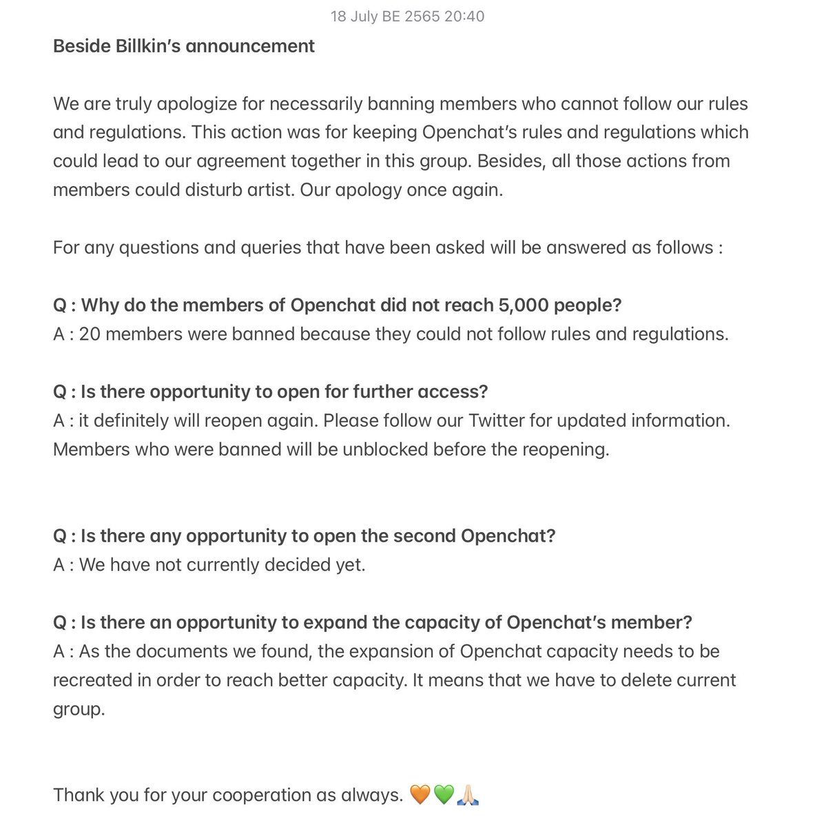 Thank you for your cooperation as always. 🧡💚🙏🏻