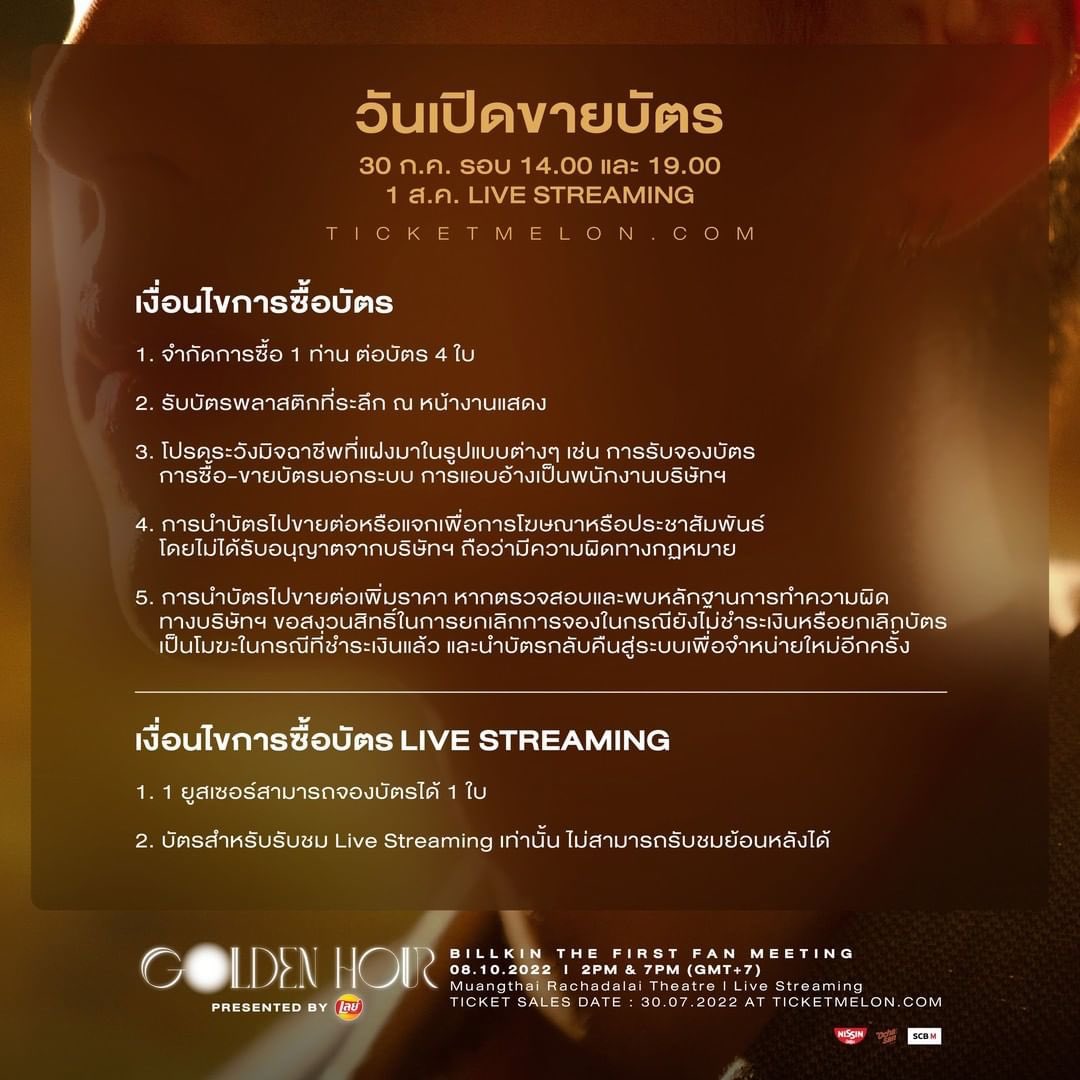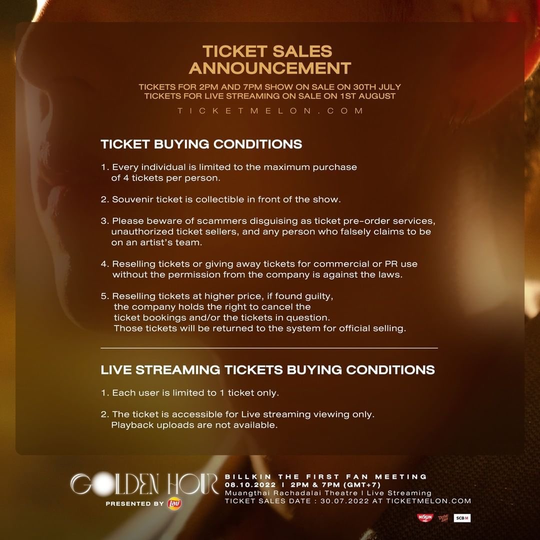 อ้างอิงจากเงื่อนไขในการซื้อขายบัตร Fan Meeting จาก Billkin Entertainment ทาง Beside Billkin อยากให้แฟนๆ ทุกคน ระวังการซื้อขายที่ผิดเงื่อนไขการซื้อขาย และให้ระวังมิจฉาชีพนำบัตรมาขายเกินราคาหรือขายบัตรซ้ำนะคะ