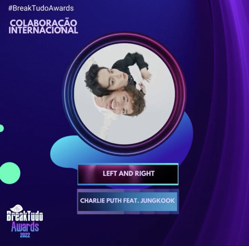 Voting for International Collaboration on BreakTudo Awards has begun. Go vote for “Left and Right” by Jungkook and Charlie Puth now!