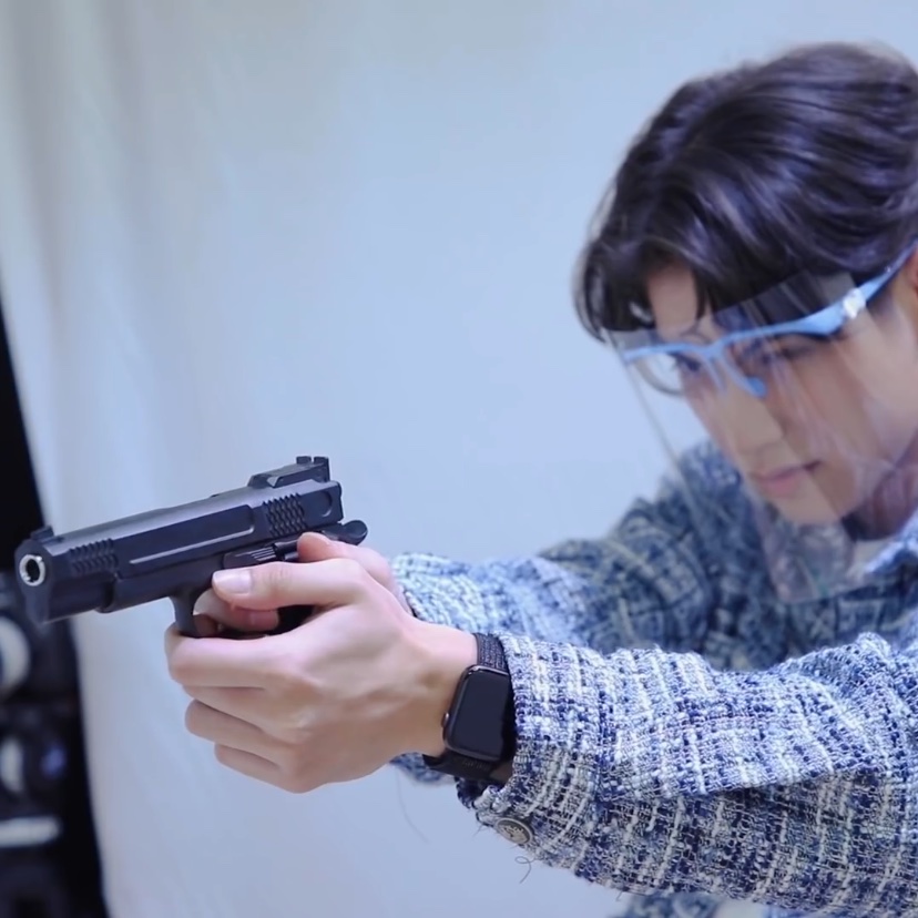 ハンドガンの構え方Bright君完璧でした👏ツーハンデッドでは利き手を水平にハイグリップし、反対の手で利き手を握り込んだ上で重ねて親指を乗せ、隙間ができないようにします。 Win君との握り方を比較すれば安定感の違いが一目瞭然✨