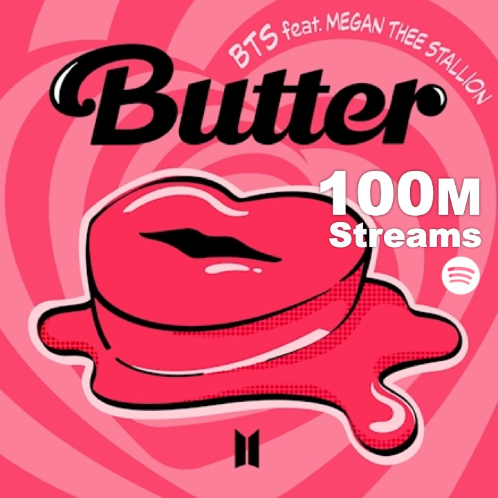 #BTS's #ButterTheeRemix with #megantheestallion has surpassed 100 MILLION Streams on #Spotify!💪🧈👩🎤💥💯Ⓜ️🎧👑👑👑👑👑👑👑👑💜🤍