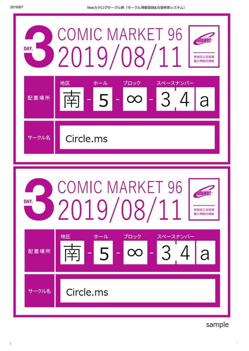 #C96 より「搬入物貼付用紙」の印刷ができるようになりました!
