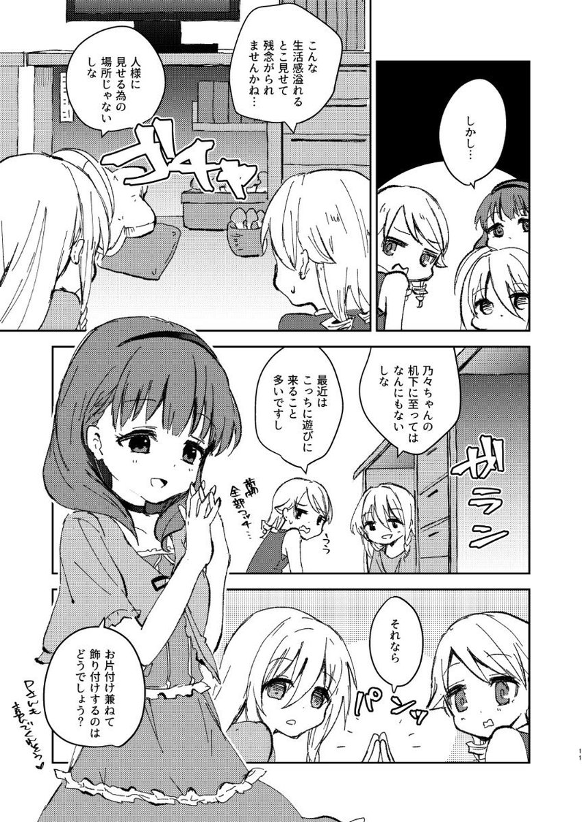 夏コミ新刊のアンダーザデスク(佐久間まゆ、森久保乃々、星輝子)と新人ズ(辻野あかり、砂塚あきら、夢見りあむ)の初顔合わせほのぼのコメディです~!アイドル6にんがわいわいしてるだけ!よろしくお願いしますー! #C96