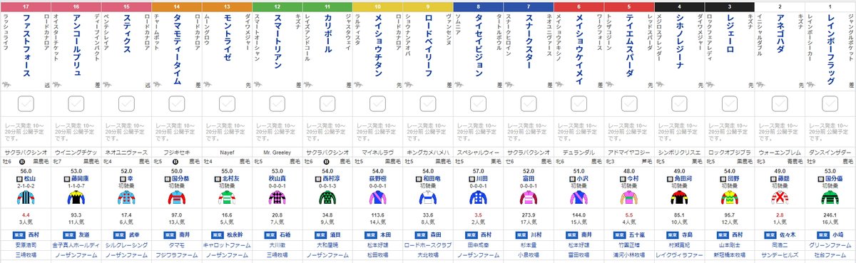 全着順・上がりタイムなど出ました。