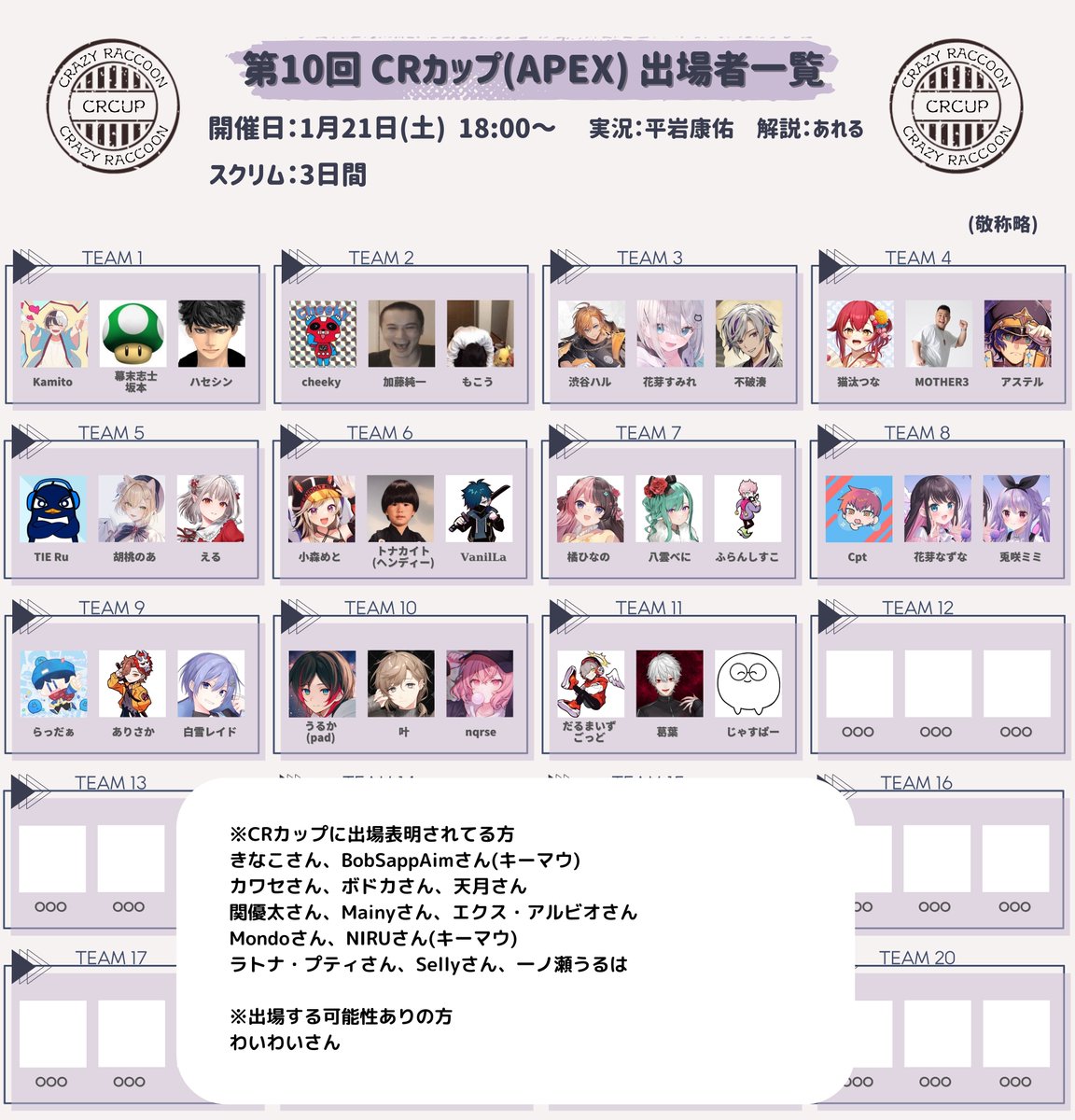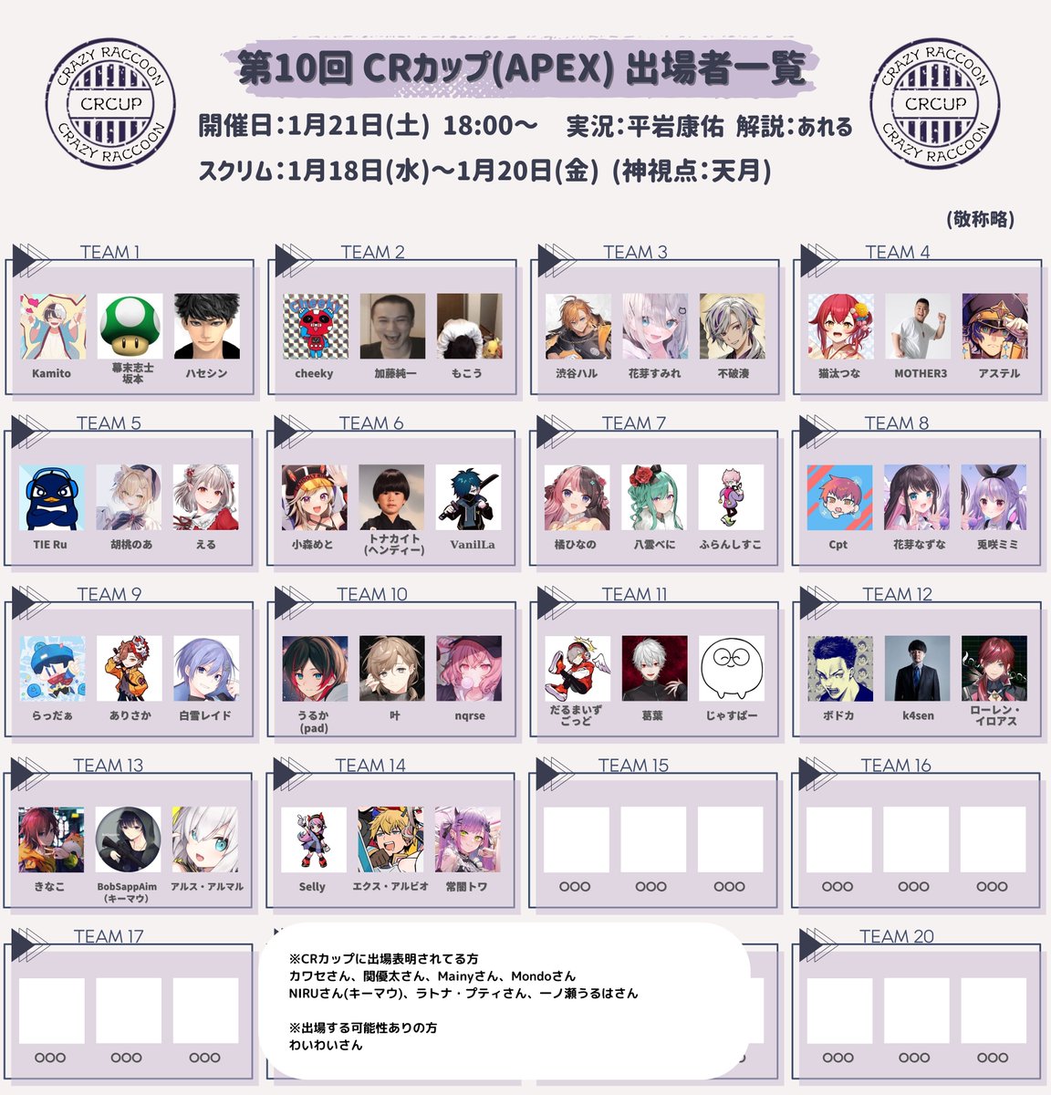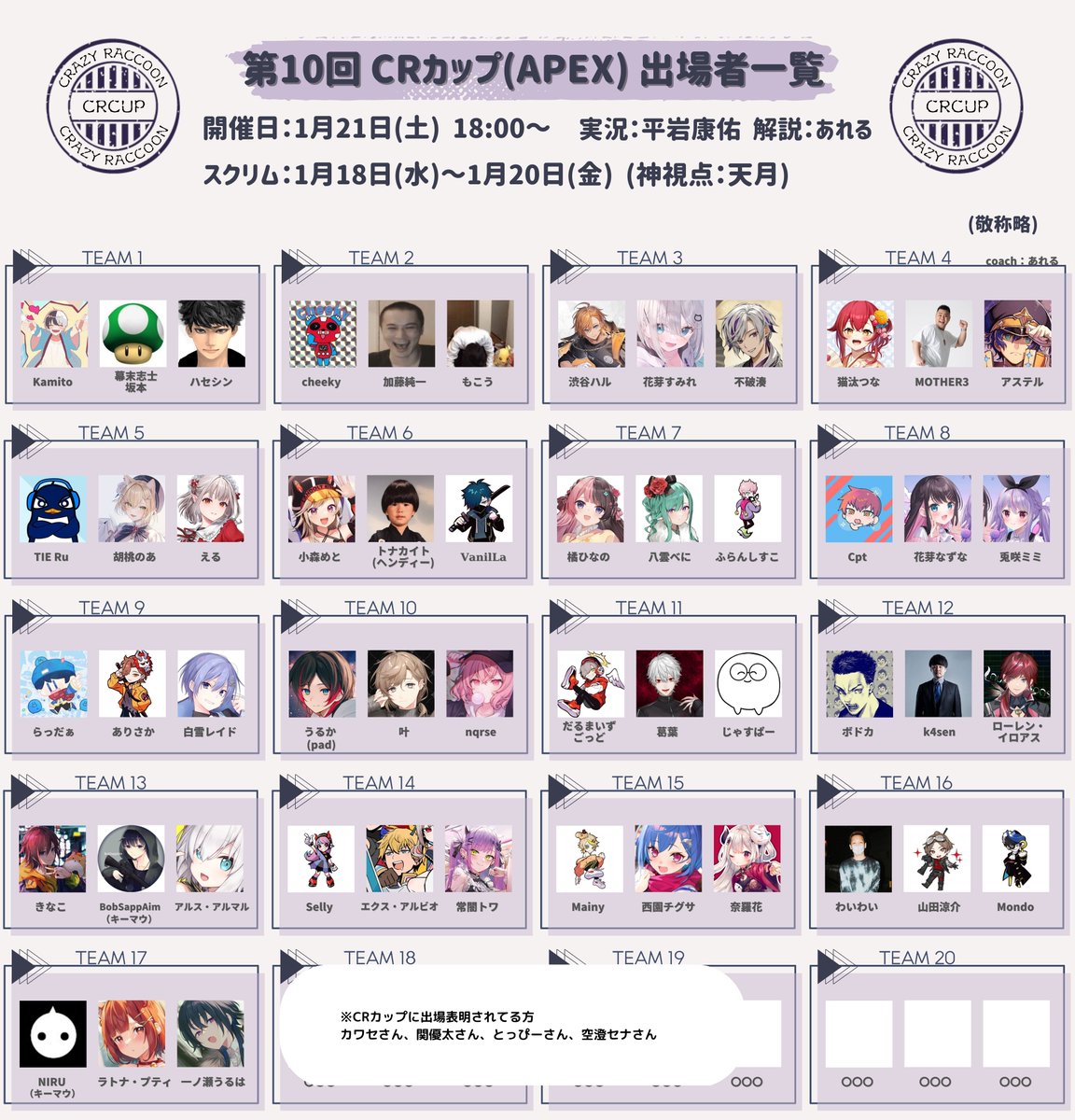 18日から始まるCRカップ APEXは神視点を担当することになりました!