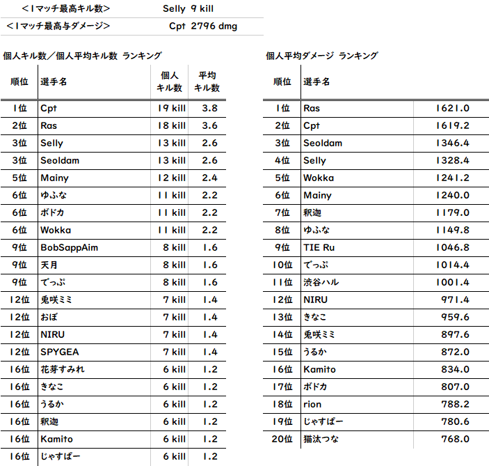 キル数TOP10 1~5位 (敬称略)