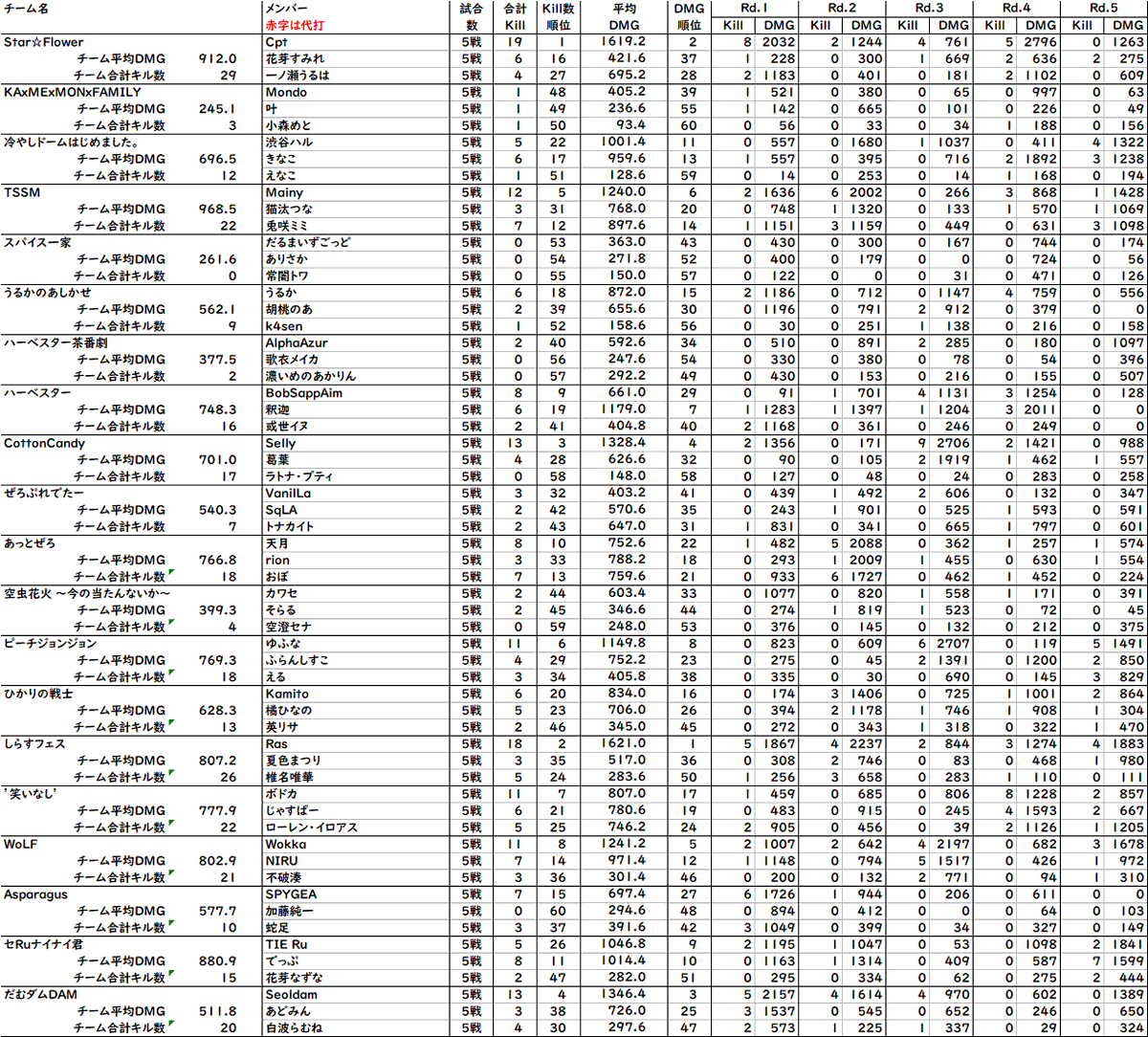平均ダメージ数TOP10 1~5位 (敬称略)