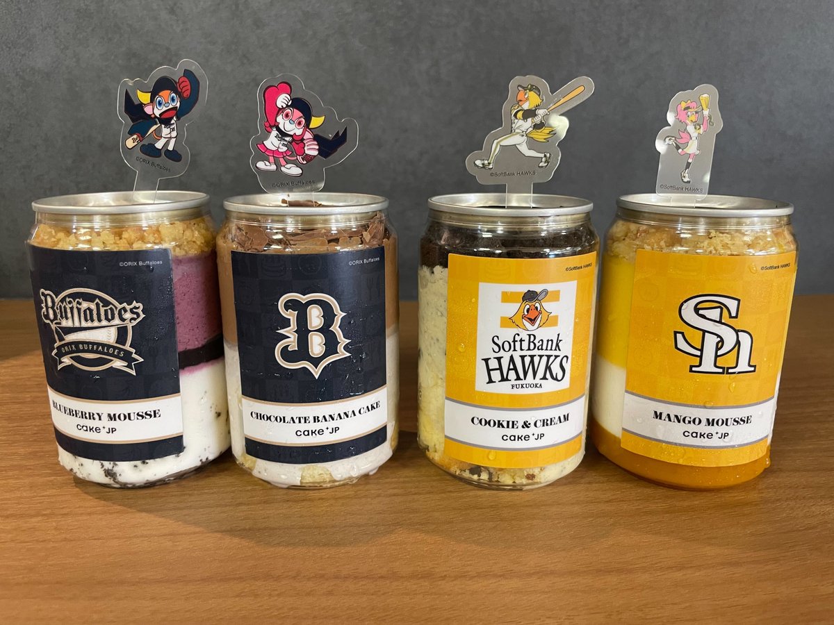 各球団のロゴやチームカラーを取り入れたコラボレーションケーキ缶が販売開始✨