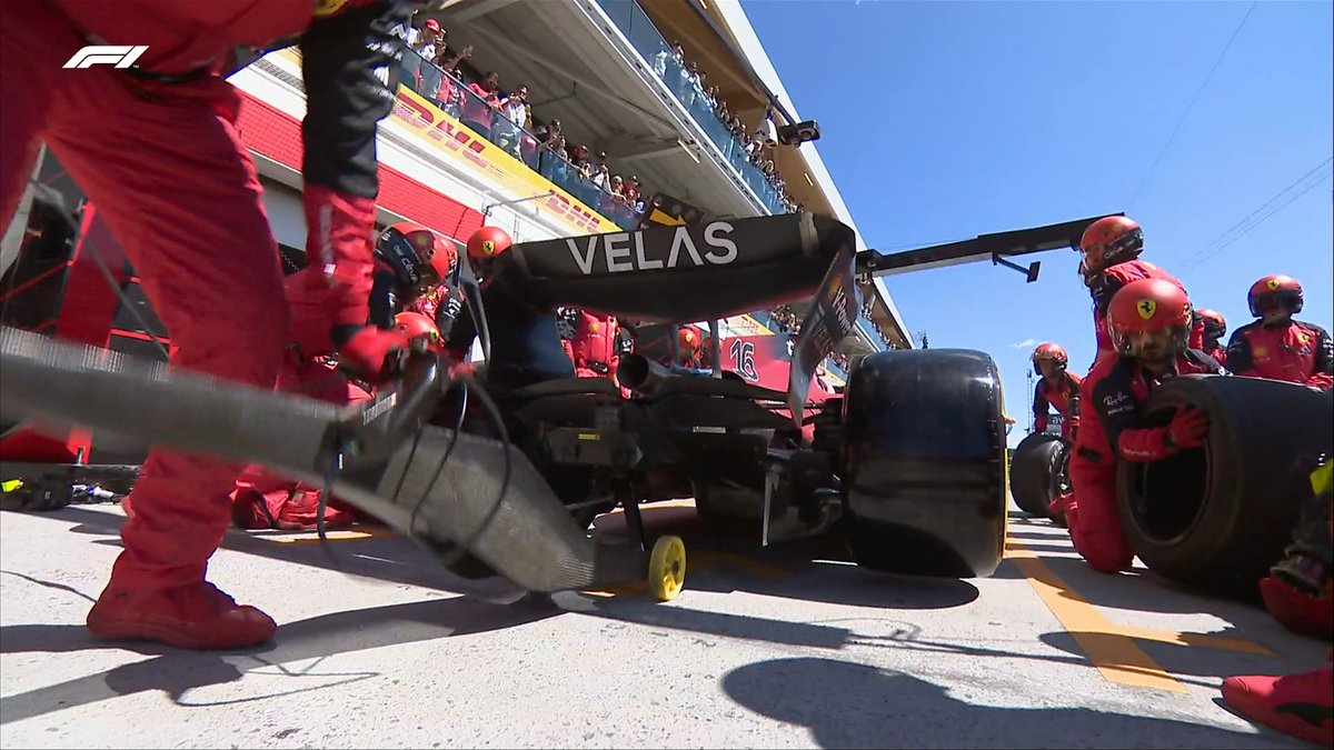 Leclerc finally pits, but it's a slow stop and he emerges P12 in traffic