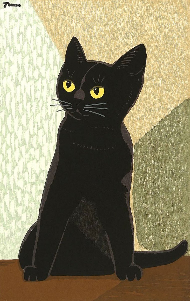 Inagaki Tomoo aka 稲垣知雄 - Black Cat, c. 1940-1950. #Caturday