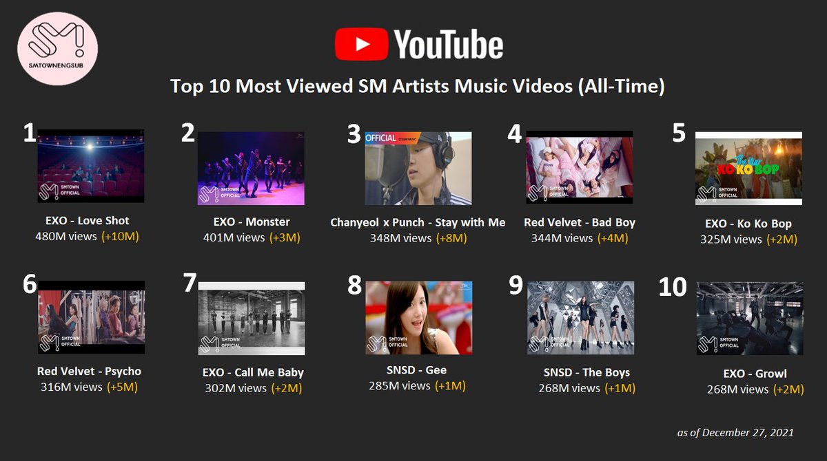 Top 10 Most Viewed SM Artists Music Videos (All-Time)